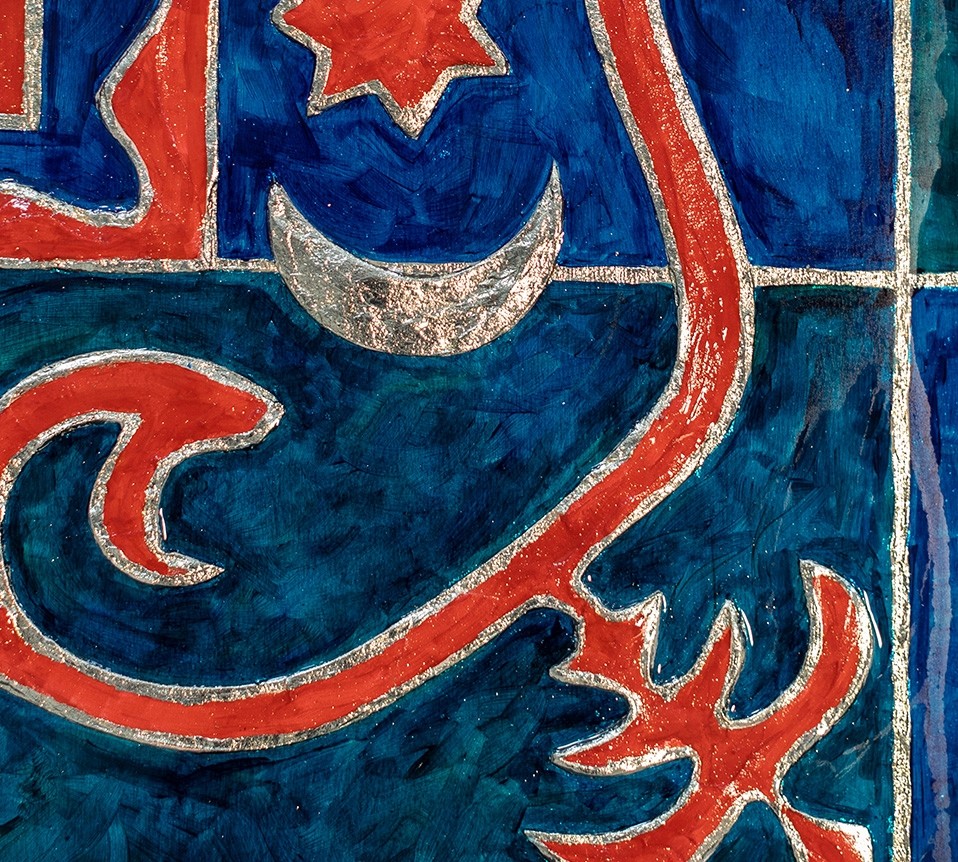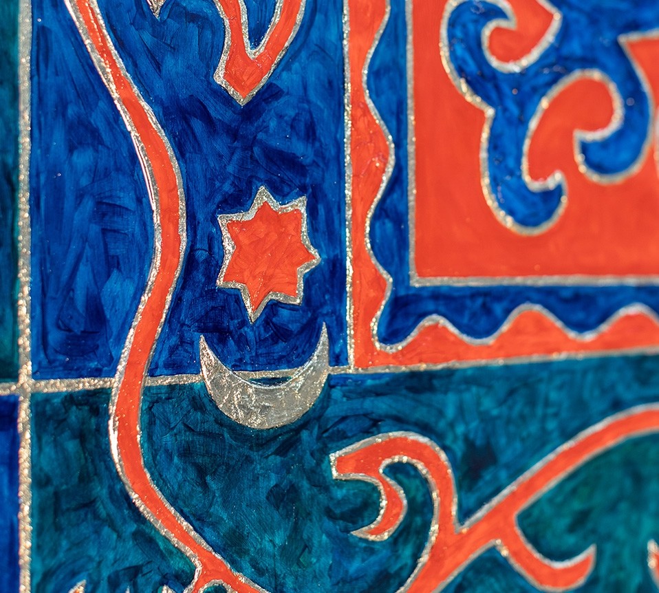 Детали композиции — звёзды, полумесяцы и плавные узоры — подчёркивают её философский смысл, напоминая о вечности и цикличности времени. Эта картина станет ярким акцентом в интерьере, отражая уважение к культурным корням и добавляя пространству глубину и изысканность.