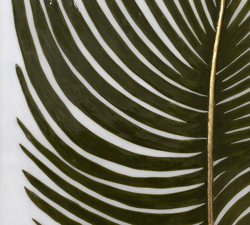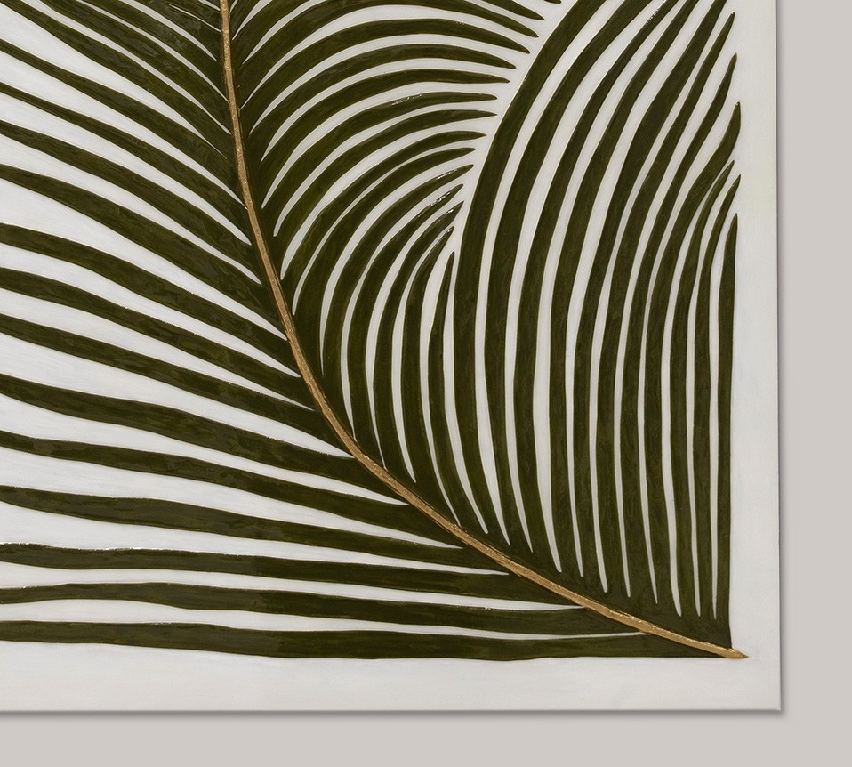Картина «Источник жизни» прекрасно дополнит ваши апартаменты, она создаст баланс благодаря белому фону, от которого веет чистотой и светом. С другой стороны цвет зелени подарит вам кусочек природы, которым вы можете любоваться в любое время года. Золотая прожилка по центру прекрасно сочетается с другими нюансами картины.