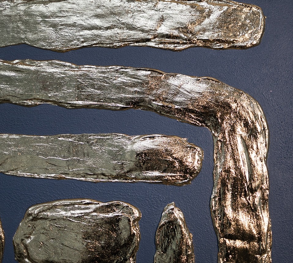 Картина «Золотой лабиринт» создана с помощью текстурной пасте и золотой потали. Вместе они создают гармоничный сюжет, который хочется подолгу рассматривать, вникать, искать смыслы. Несмотря на яркий акцент в виде потали в оттенке барокко от картины веет спокойствием.